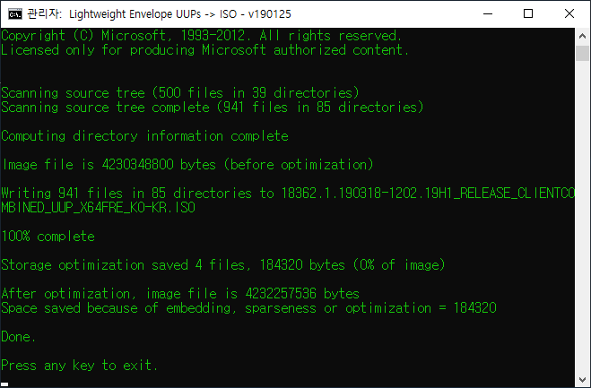 시간은 10분 정도 소요됬습니다. 이제 다운로드 받은 파일을 보면 iso 하나로 통합되어져 나왔네요.