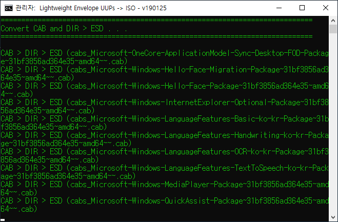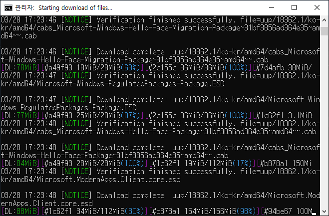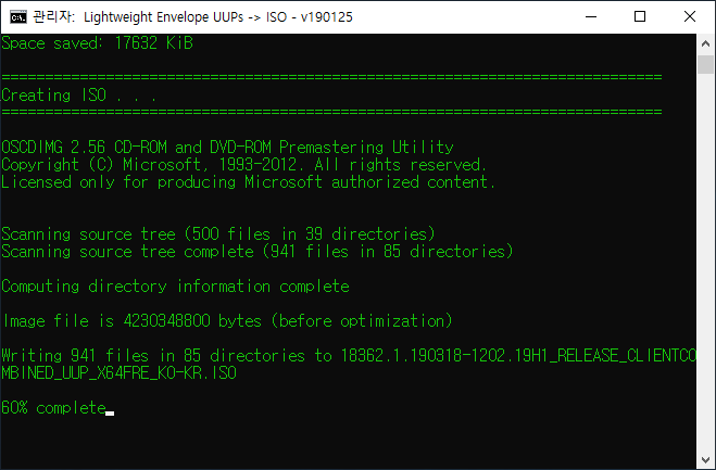 실행을 시키면 뭐가 막 나오면서 다운로드가 됩니다. 약간의 시간이 걸리고 iso 파일이 만들어 집니다. 이것은 ssd hdd 속도나 시스템 사양 인터넷 속도에 따라 만들어지는 시간이 상이 합니다.