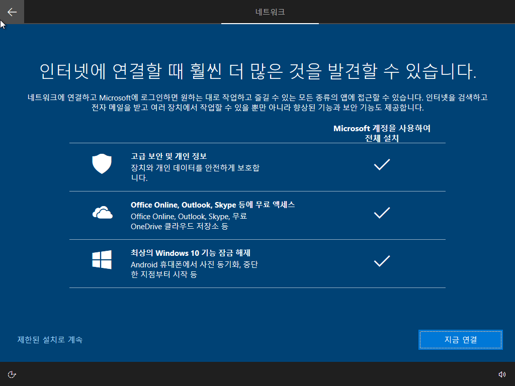 계정 넣고 암호 안넣고.. 설치를 완료합니다. 설치 초기 화면입니다. 지구본모양은 랜선 연결 안되서 그런겁니다. 기본이 검색창 크기를 크게 키워놓은 상태이고, 피플 없어졌어요.