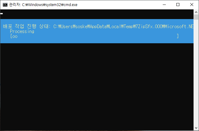 관리자 권한으로 실행해야 합니다. 아래 화면처럼 뭐가 훅훅 지나갑니다. 몇번 정도요