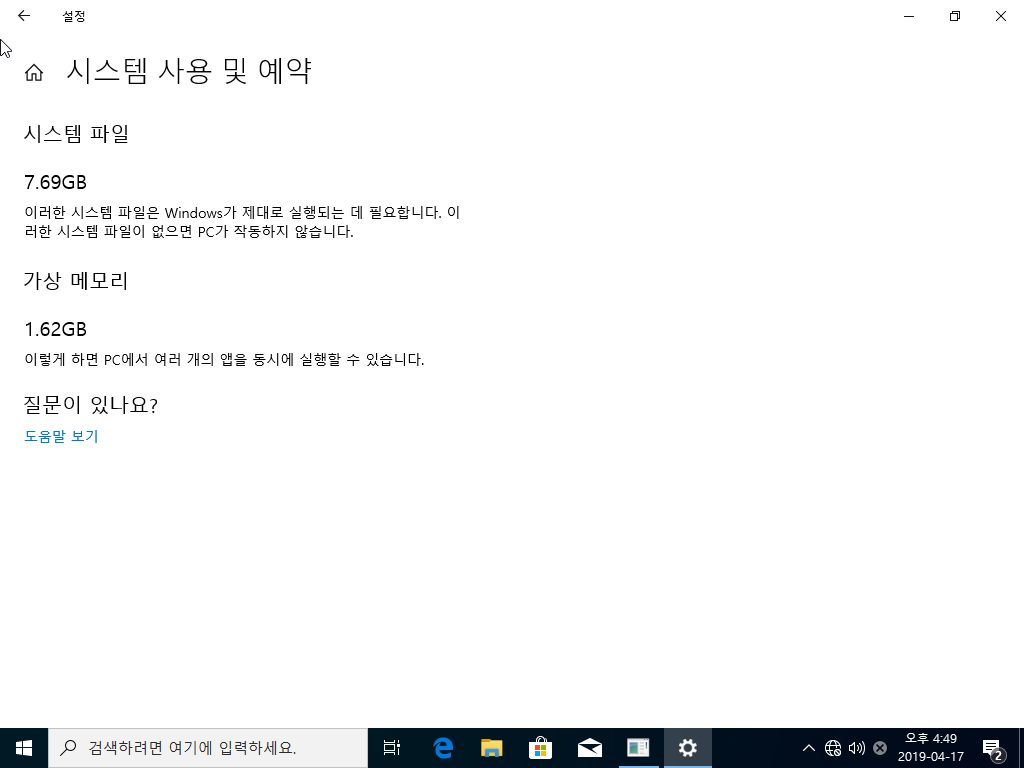 설치/사용기 - [추가] 윈도10 버전1903 예약된 저장소 - 삭제 테스트
