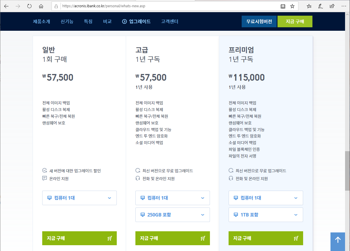 아크로니스 한국 홈피에도 업데이트가 되었습니다. 1년 구독으로 신청을 하면 최신버젼으로 업데이트가 되네요. 이전에 Acronis Backup과 비슷한 방식입니다. 비용은 49 달러 되겠습니다. 사딸라면 좋을텐데요...