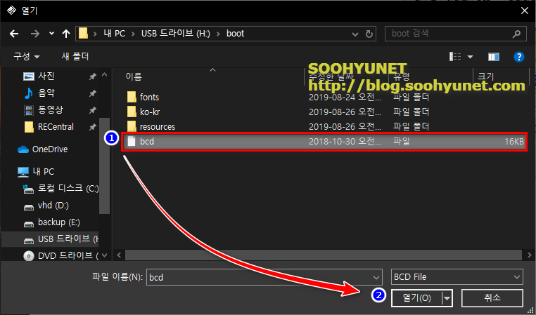 다른 BCD 파일을 선택하면 팝업창이 열립니다. 아래 그림처럼 선택하고 열기를 누룹니다.